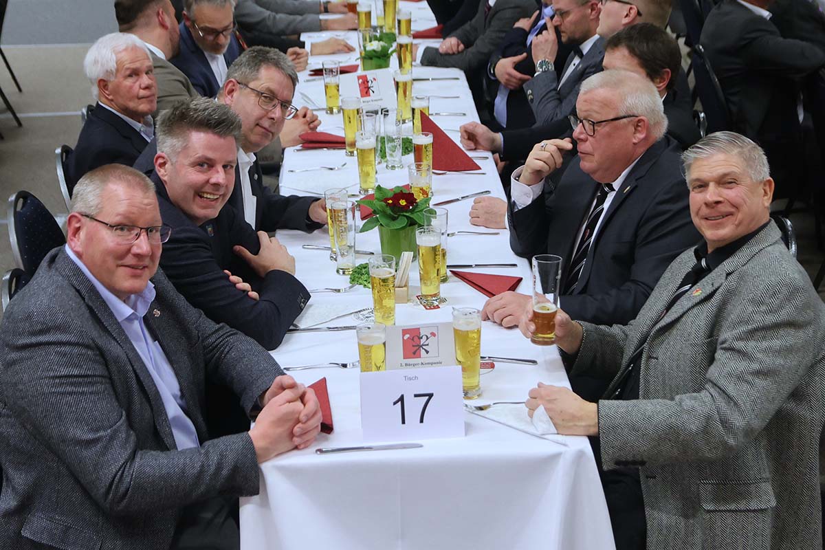 Bei deftigen Grünkohlgerichten und frisch gezapftem Bier kamen die Gäste schnell ins Gespräch. Die entspannte Atmosphäre lud zum Netzwerken und Fachsimpeln ein, während man gemeinsam auf die Tradition des Mindener Bürgerbataillons anstieß. Ob langjährige Weggefährten oder neue Gesichter – der Herrenabend bot eine hervorragende Plattform für den persönlichen Austausch über aktuelle Themen aus Politik, Wirtschaft und Gesellschaft.
