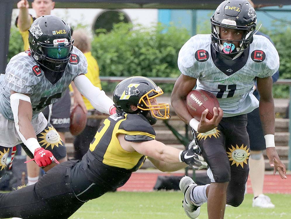 Für die Baltimore Lightning brachte es der Wide Receiver 2022 auf 20 Touchdowns und wurde in seiner Heimat zum Offense-MVP gewählt. Der Weg führte ihn anschließend nach Deutschland, an die Weser. Dort avancierte Willie Fedd jr. auf Anhieb zum erfolgreichsten Punktelieferanten. 29 Touchdowns erlief und fing der Amerikaner in seiner ersten Saison, 2.900 Yards (kombiniert) standen für ihn zu Buche. Eine Topmarke! Im Folgejahr steuerte er 20 Touchdowns für die Minden Wolves bei. Insbesondere als Returner in den Specialteams machte sich Fedd einen Namen, als er oftmals von links nach rechts hakenschlagend wie ein Hase über das komplette Feld bis ins „gelobte Land“ lief. Sehr zur Freude der Mindener Fans, die ihren „Willie“ längst ins Herz geschlossen hatten.